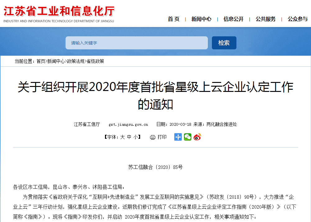 2020 云轻风暖,上云正当时 —— 江苏省启动2020星级上云企业认定