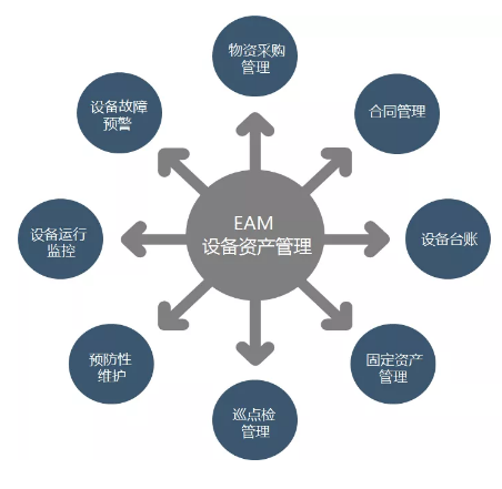 EAM是面向资产密集型企业的信息化管理系统,是资产密集型企业必备的降低成本、提高利润的战略管理工具。EAM从CMMS(计算机辅助维护管理系统)发展而来,CMMS系统的着眼点是维修,EAM的着眼点更高,是资产的全面管理。EAM以企业资产及维修管理为核心,提高资产可利用率,降低企业运行维护成本,减少停机时间,提升企业竞争力。