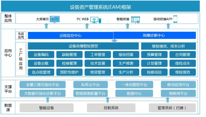 建设设备资产管理所有数据的存储、计算、应用等功能于一体的数据分析中心,实现对实时数据、关系型数据、视频数据、文档数据的统一有效管理和应用。提供面对设备诊断、故障预警、运行优化、节能诊断等业务应用。
