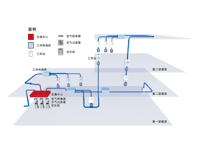 根据客户的局域物流需求和应用场景构架,将分布于不同区域的工作点用专用管道连接起来,构成一个封闭的传送传送网络。
