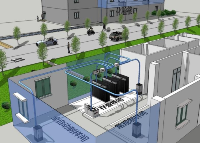 煤样瓶通过积硕的气动管道传输,分别送入化验室和智能存样柜