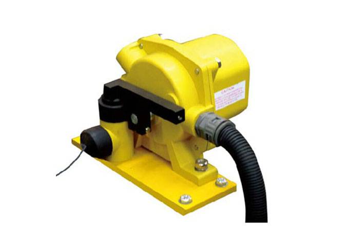 在皮带出现由于撕裂、戳破、绞结处损坏或锋利物凸出皮带时,撕裂开关能给监视人员提供联锁信号或关掉输送机,以防止造成更大的损失。撕裂开关应成对安装在皮带两侧,由两段钢丝绳连接起来(钢丝绳有聚乙烯外套护层)。绳的一端永久固定在支撑托架上,另一端连接在撕裂开关上的弹簧球上。两段钢绳在皮带下面形成了一个和皮带槽型一致的闭合回路。当有物体戳穿或撕裂的皮带悬吊下来,扫落一条或两条钢绳时,弹簧球被拉出底座,引起两个微动开关发出报警信号或关掉输送机。