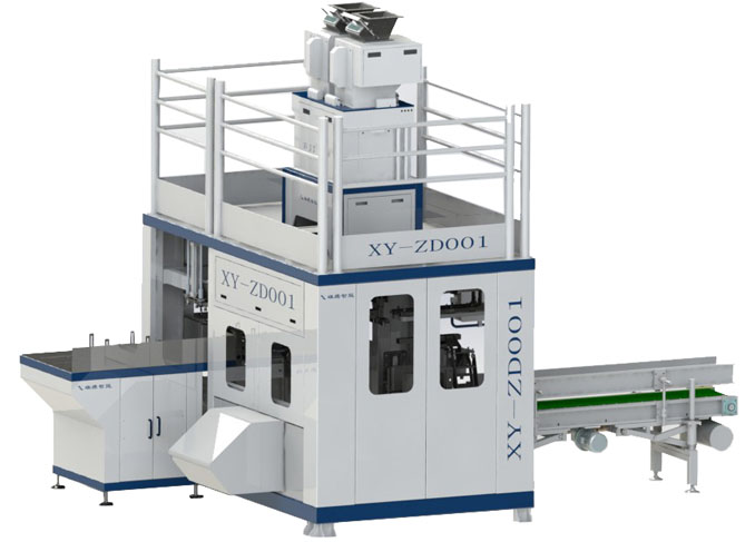 赛摩智能针对化工、肥料、饲料、粮食、种子、食品等行业的大袋子颗粒物料包装而设计的新型包装机机组,该机组具有自动称量、自动上袋、自动填充、自动送包、自动封口等功能。可与后道码垛机器人等设备实现联动,实现大规格包装、码垛无人化作业。