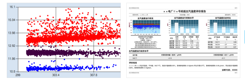 通过对分析数据进行条件筛选,开展典型工况下的数据纵横对比,解决生产管理人员开展节能分析时受到负荷变动、环境温度变化、煤质波动等问题带来的干扰,实现设备性能诊断、机组性能分析、指标参数评价、检修前后考评等功能,并出具相应诊断报告。