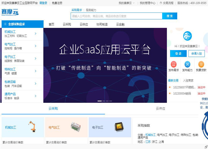 赛摩“协同制造”工业互联网平台协同企业物资采购和外协加工的交易电商化和信息化;融合多种企业管理软件,帮助企业低成本实现一站式企业管理信息化,实现智能制造。