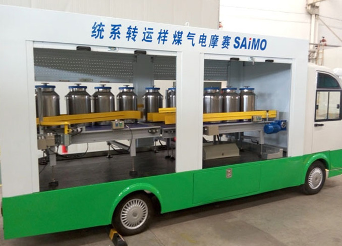 赛摩针对采样样品(大样)的转送环节开发了无人干预的全自动样品转送系统,在采样区配置自动进出样的样品收集器,样品收集后自动出样,通过输送系统和样桶提升装置和送样小车对接。送样小车到达停车位后,车门自动开启,系统自动将车上的空罐卸到缓存区,系统确认空罐后自动将样品罐送到送样小车。